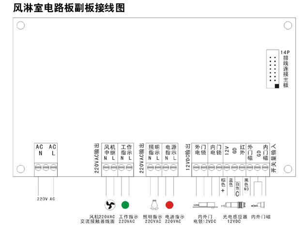 2、梓凈風(fēng)淋室使用說(shuō)明書>>副板接線示意圖: