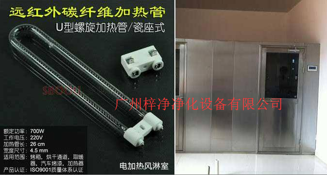 電加熱風淋室采用“遠紅外碳纖維U型螺旋加熱管”進行電加熱,加熱時間只需要1分鐘,電加熱風淋室在一分鐘之后,室內(nèi)溫度可達25-35度,內(nèi)部采用耐高溫阻燃硅膠線,電加熱風淋室耐熱溫度可達180度。