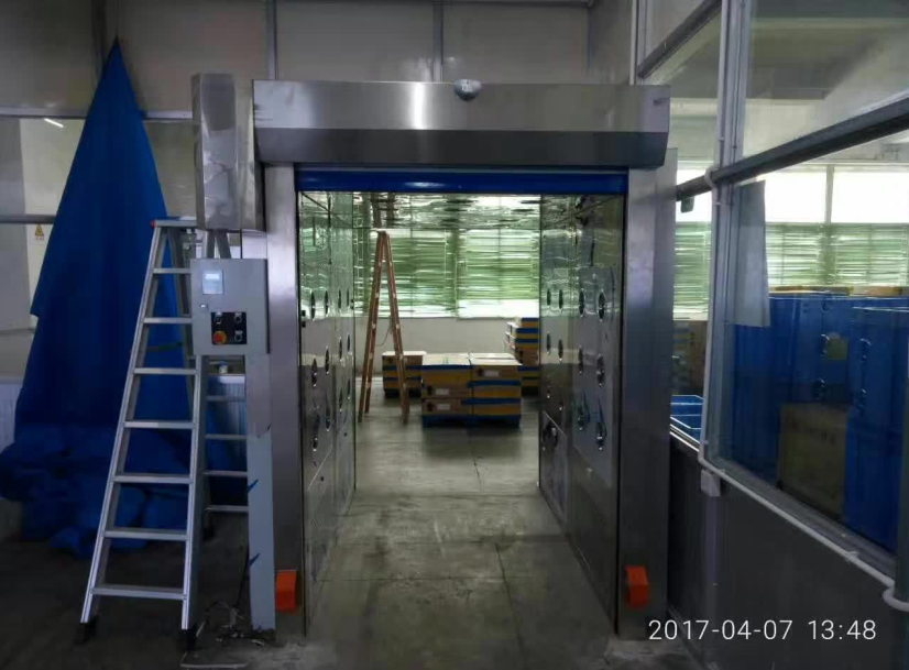 快速卷簾門貨淋室廣泛適用于電子,食品,包裝企業(yè)的物流通道處,對即將進(jìn)入潔凈車間進(jìn)行操作加工的貨物原材料及工具進(jìn)行吹淋,達(dá)到過濾去除灰塵粒子,保證進(jìn)入無塵車間的原材料潔凈的效果。