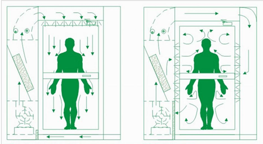 雙人風淋門是一種通用性較強的局部凈化設備,安裝于潔凈室與非潔凈室之間。當人與貨物要進入潔凈區(qū)時需經風淋室吹淋,其吹出的潔凈空氣可去除人與貨物所攜帶的塵埃,能有效的阻斷或減少塵源進入潔凈區(qū)。雙人風淋門/貨淋室的前后兩道門為電子互鎖,又可起到氣閘的作用,阻止未凈化的空氣進入潔凈區(qū)域。