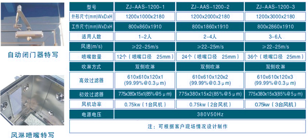 可參考以下梓凈風(fēng)淋通道相關(guān)規(guī)格尺寸及技術(shù)參數(shù):ZJ-AAS-1200技術(shù)參數(shù):
