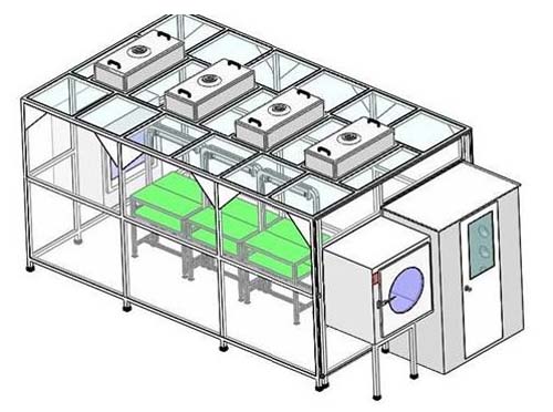 潔凈棚又叫無塵工作站一般以工業(yè)鋁材(不銹鋼方通、噴塑方通)做框架,采用風(fēng)機(jī)濾網(wǎng)機(jī)組FFU送風(fēng),四周采用防靜電垂簾,頂部鋪蓋密縫盲板,形成一個(gè)密縫區(qū),內(nèi)部凈化級別可達(dá)100—10萬級;特別適用于車間內(nèi)局部對潔凈度要求高的區(qū)域,如流水線作業(yè)區(qū)的高精確度產(chǎn)品組裝區(qū)。
