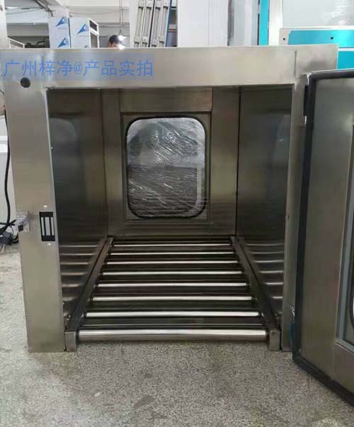 滾筒式傳遞窗在傳遞物料時(shí),頂部吹出高速、潔凈氣流,吹除貨物表面的塵粒,此時(shí),兩側(cè)門可以打開也可關(guān)閉,潔凈氣流起到氣閘作用,以保證潔凈室室外的空氣不會(huì)影響室內(nèi)的潔凈度。滾筒輸送線傳遞窗產(chǎn)品實(shí)拍