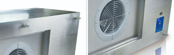 箱體材質由彩鋼板、優(yōu)質鋼板、不銹鋼板供用戶選擇。FFU層流罩產品結構特點