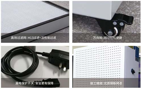 另外,需要說明的是:有效果的家用FFU凈化器一定是有聲音的,要想達(dá)到99.99%的凈化效果,必須得有一定的風(fēng)壓才行,電機(jī)功率必須足夠,否則,要么凈化時(shí)間長(zhǎng),要么凈化效率不達(dá)標(biāo)!家用FFU細(xì)節(jié)展示圖