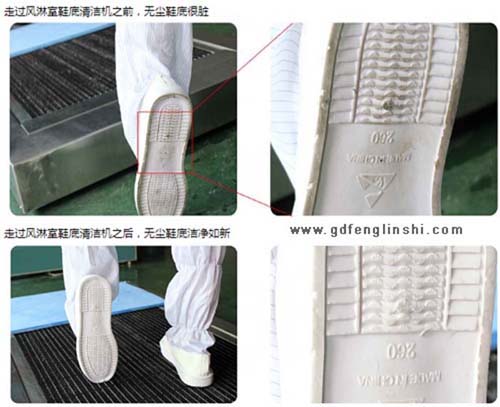[0004] 現(xiàn)有的風(fēng)淋室都是具有吹淋人體四周的功能,而不具有清潔鞋底的功能,然而,鞋底是人體上最臟的部位,如果只清潔人體四周,而不清潔人的鞋底,那么被清潔過的人體四周很快就會被再次污染。