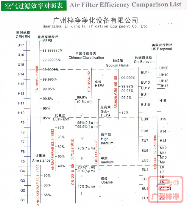 當(dāng)前位置:首頁(yè) >> 風(fēng)淋室故障|風(fēng)淋室維修技術(shù) >> 空氣過(guò)濾器效率對(duì)照表空氣過(guò)濾器效率對(duì)照表分為歐洲規(guī)格、中國(guó)傳統(tǒng)分類、歐洲舊規(guī)格、美國(guó)試行規(guī)格。