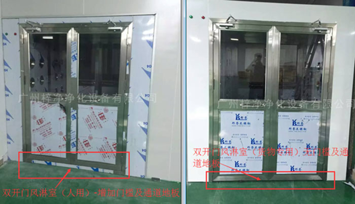 1、貨物風(fēng)淋室沒(méi)有設(shè)置門(mén)檻及通道地板–方便推車出入;