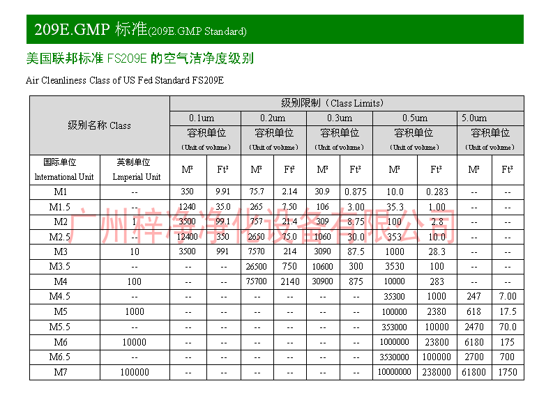當前位置:首頁 >> 風淋室故障|風淋室維修技術 >> 美國聯(lián)邦標準FS209E的空氣潔凈度級別209E.GMP標準(209E.GMP?Standard)美國聯(lián)邦標準FS209E的空氣潔凈度級別Air?Cleanliness?Class?of?US?Fed?Standard?FS209E