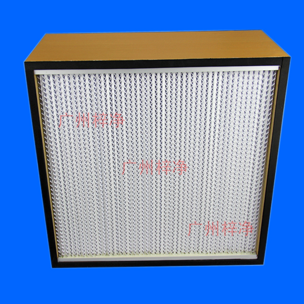 木框有隔板高效過(guò)濾器濾材兩面180褶翻折形成鍥形褶層,濾料折彎時(shí)有兩道壓痕,使其在隔板的尾端開(kāi)成鍥形盒式褶層,鍥形盒式褶層可以防止濾料破損。在腐蝕性環(huán)境中,可使用鍍乙烯隔板,捕捉0.3umr粒子效率99.99%。