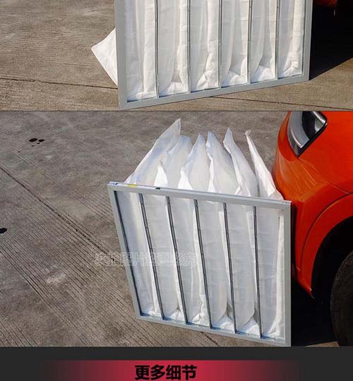 2、F9級袋式中效過濾器熔噴超細(xì)合成纖維濾料,并選用優(yōu)化的“V”形濾袋結(jié)構(gòu),阻力小,使用壽命長。