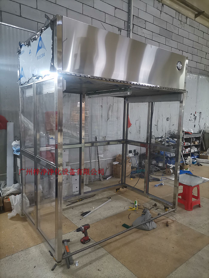 5、工作區(qū)兩側(cè)為不銹鋼擋板,前后為條形防靜電防塵垂簾,達(dá)到理想防塵效果