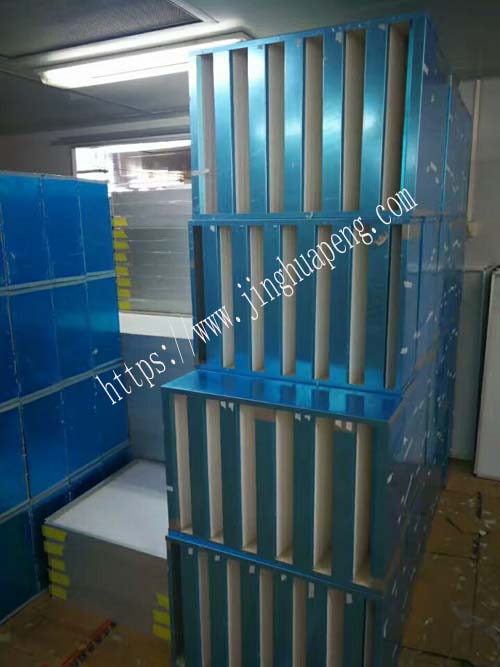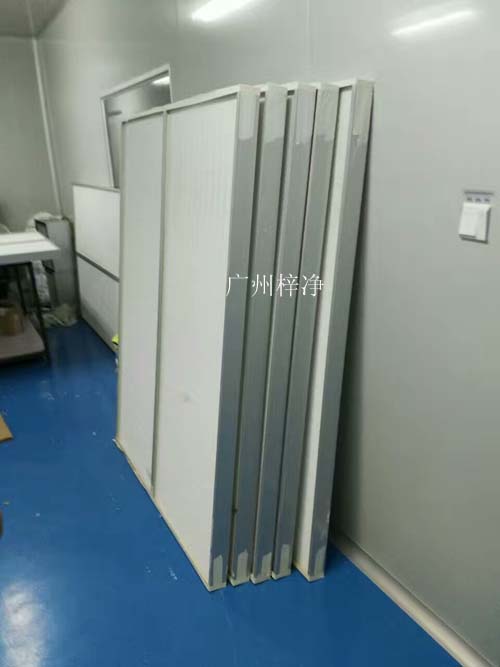 有隔板高效過濾器是針對不同粒經,高效過濾器的效率最高可達99.999999以上(國外)。有人總把過濾器的效率等級與潔凈室的級別對應起來,好象用了多少個9的超高效過濾器就能達到百級甚至10級的潔凈度。實際上這是錯誤的觀念。高效過濾器是系統的核心,但并不是保證潔凈度的唯一條件。高效過濾器的效率達到要求只是個必要條件之一,也是最容易實現的條件。而要達到潔凈室的相應級別還應有許多必要條件,如風速、換氣次數、門窗密封、人員進出的潔凈室控制等許多方面。只有這些方面全部達標才能保證潔凈室潔凈度要求。高效過濾器生產檢測車間
