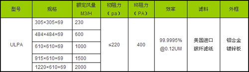 以上是關于ULPA超高效過濾器的介紹,其實說起過濾器的知識,非常豐富,我們要充分把握各類過濾器的特色和分類,才能更好的讓過濾器為大家提供服務價值。如今生產廠家不斷創(chuàng)新,就是為了擴大過濾器市場,讓人們都擁有潔凈無污染的環(huán)境。"梓凈"牌ULPA超高效過濾器安裝方便,使用壽命長。ULPA超高效過濾器規(guī)格尺寸及技術參數:ULPA超高效過濾器規(guī)格尺寸及技術參數廣州梓凈所提供的空氣凈化產品及設備風淋室,貨淋室,初效過濾器,中效過濾器,高效過濾器、超凈工作臺,潔凈工作臺,傳遞窗,風淋室配件,風淋室控制器,化學過濾器,FFU風機過濾單元,空氣自凈器,潔凈棚,層流罩,新風柜,過濾柜,通風柜,洗手池,無塵鞋柜/無塵衣柜,潔凈采樣車,送風天花,高風效送口等等潔凈室及配套用凈化產品等。無塵車間凈化設備廣泛應用于電子、半導體、生物制藥、食品加工、核工業(yè)、汽車制造業(yè),空調暖通業(yè)行業(yè)和領域等。
