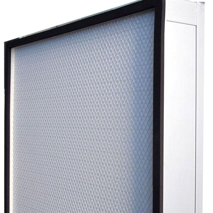 HEPA高效過濾器間隔線為漢高熱溶膠;密封為進口漢高熱溶膠、聚氨脂;外框材質為表面經過陽極處理的鋁型材、鋁板、鍍鋅板或木質;雙面附菱形鋼板網和鋁網。