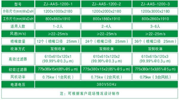 “梓凈”牌潔凈風(fēng)淋室規(guī)格尺寸技術(shù)參數(shù):